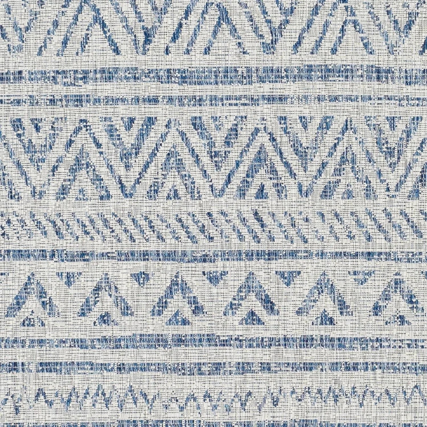 4 ft. x 6 ft. Blue Grey Chevron Coastal Boho Style Indoor Outdoor Area Rug