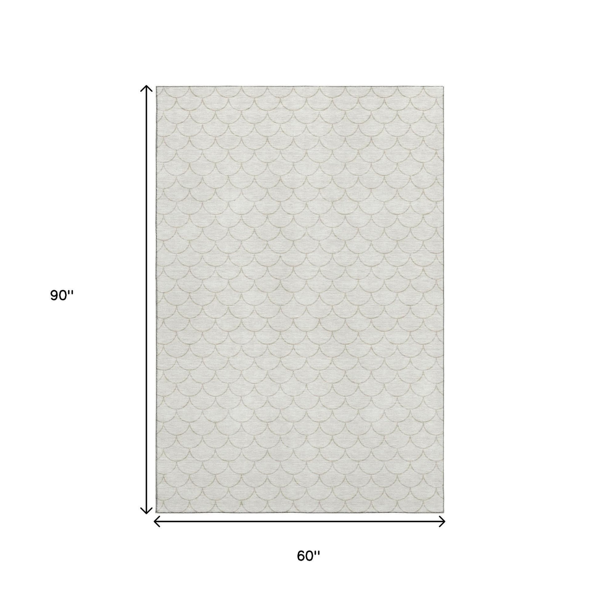 5' X 8' Ivory and Beige Geometric Washable Area Rug with UV Protection