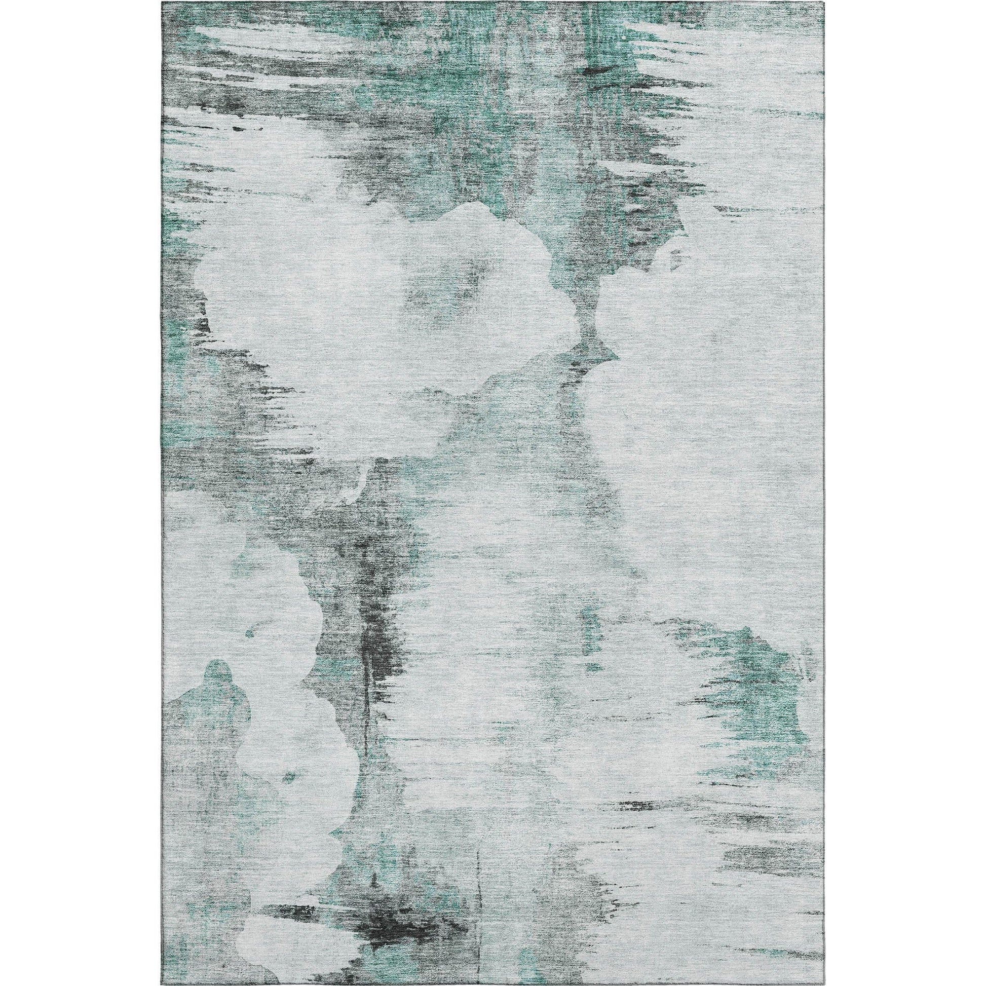 5' X 8' Teal Gray and Ivory Abstract Washable Area Rug with UV Protection