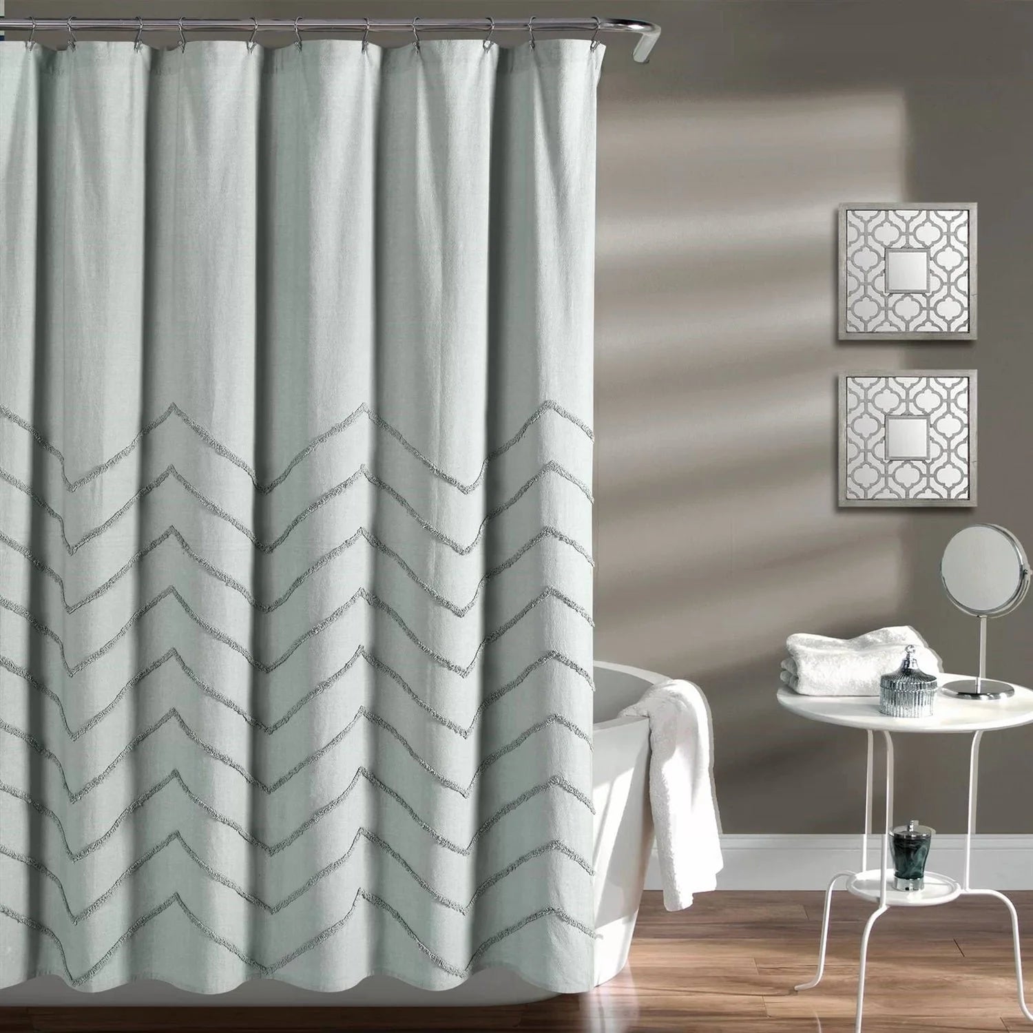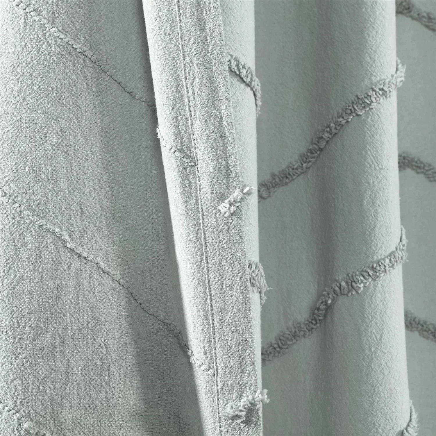 - 72-inch Pastel Blue Chenille Cotton Shower Curtain with Chevron Pattern