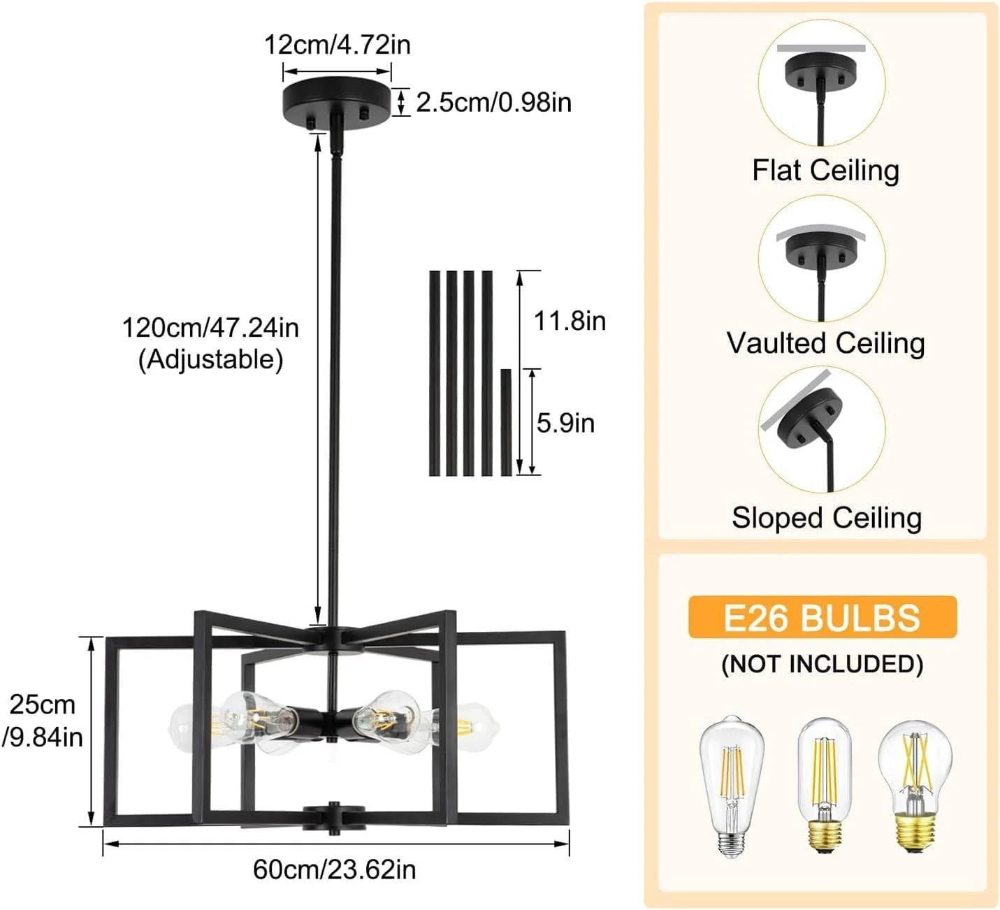 - Adjustable hanging height: 5.9" to 53.1" using one 5.9" rod + four 11.8" rods for customizable styling.