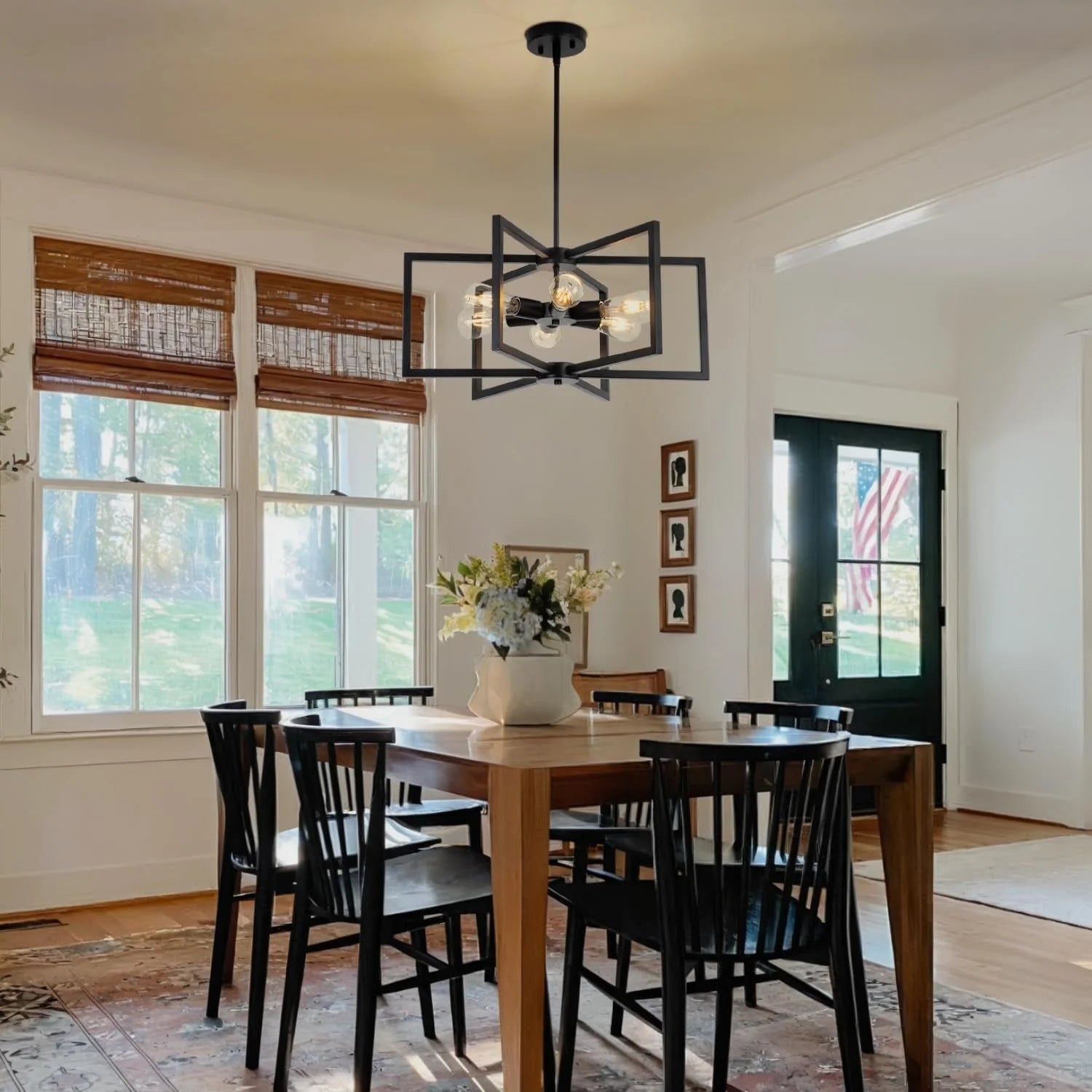 Transform your dining room into a warm, inviting focal point. The Black 23-Inch 6-Light Farmhouse Chandelier blends modern industrial edge with rustic charm, giving you a striking centerpiece that adapts to your space and mood.