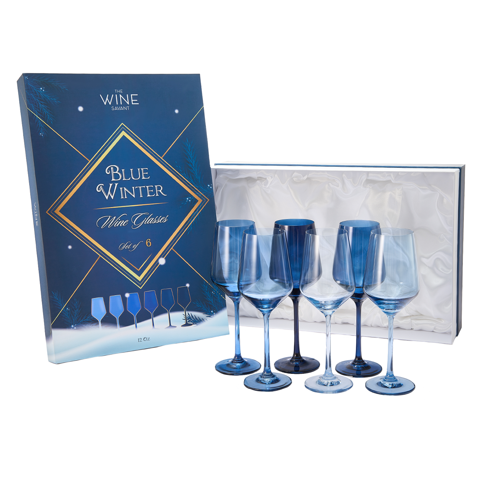 Blue Winter Christmas Wine Glasses | Set of 12 | Navy Colors