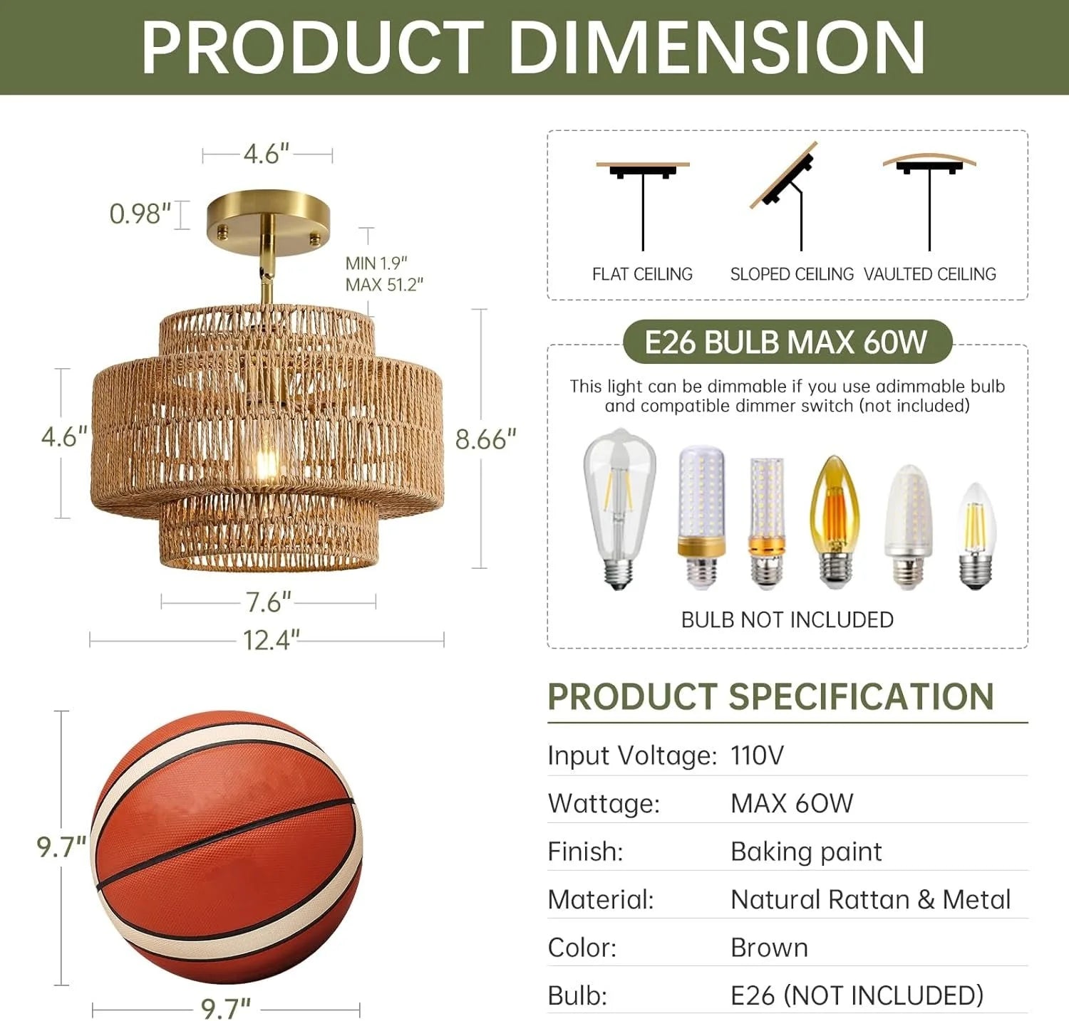 - Durable & eco-friendly design features natural rattan and a thickened metal lamp body frame that’s fade-resistant and safe for homes.