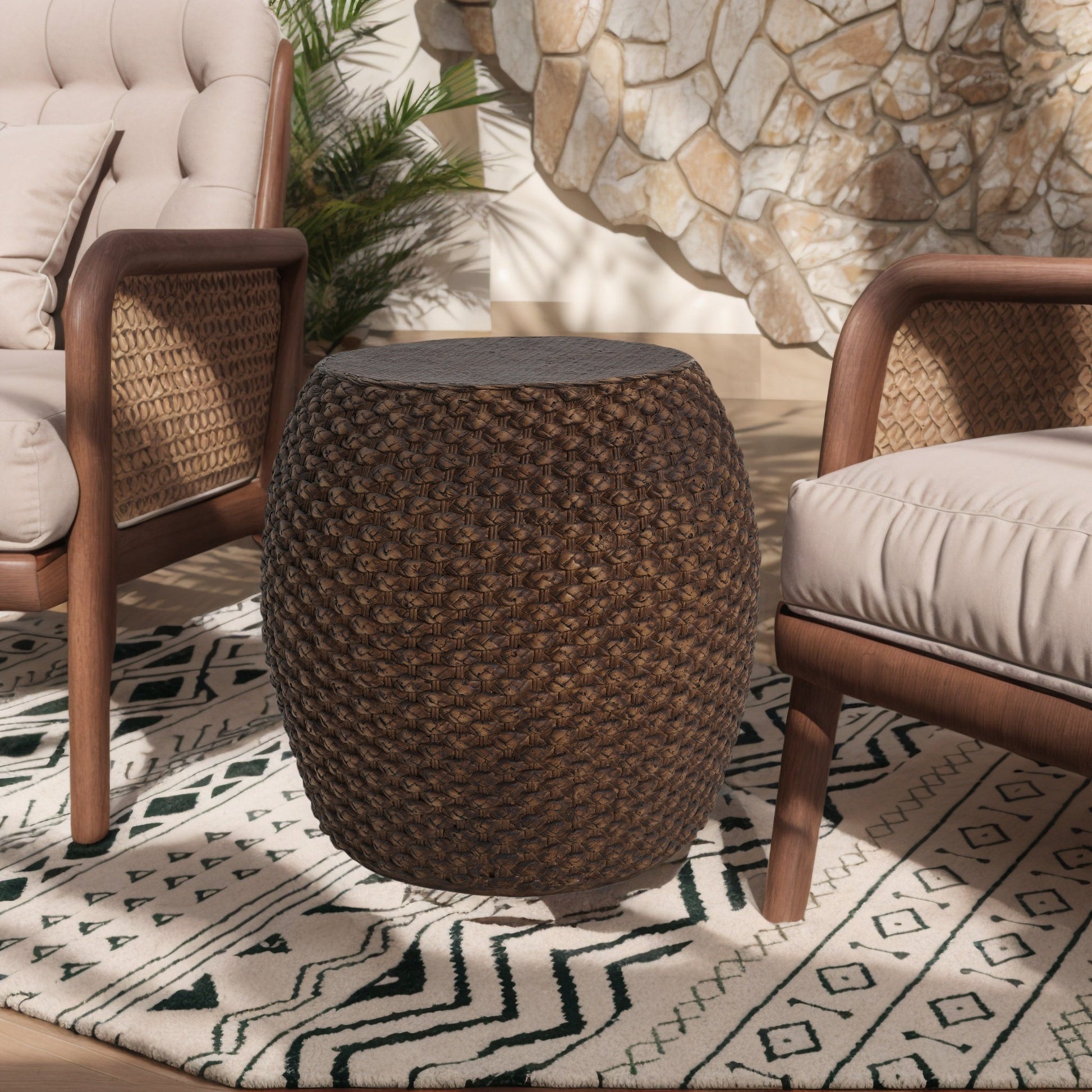 Faux Rattan Side Table for Both Indoor and Outdoor Use, Handmade MgO, Brown