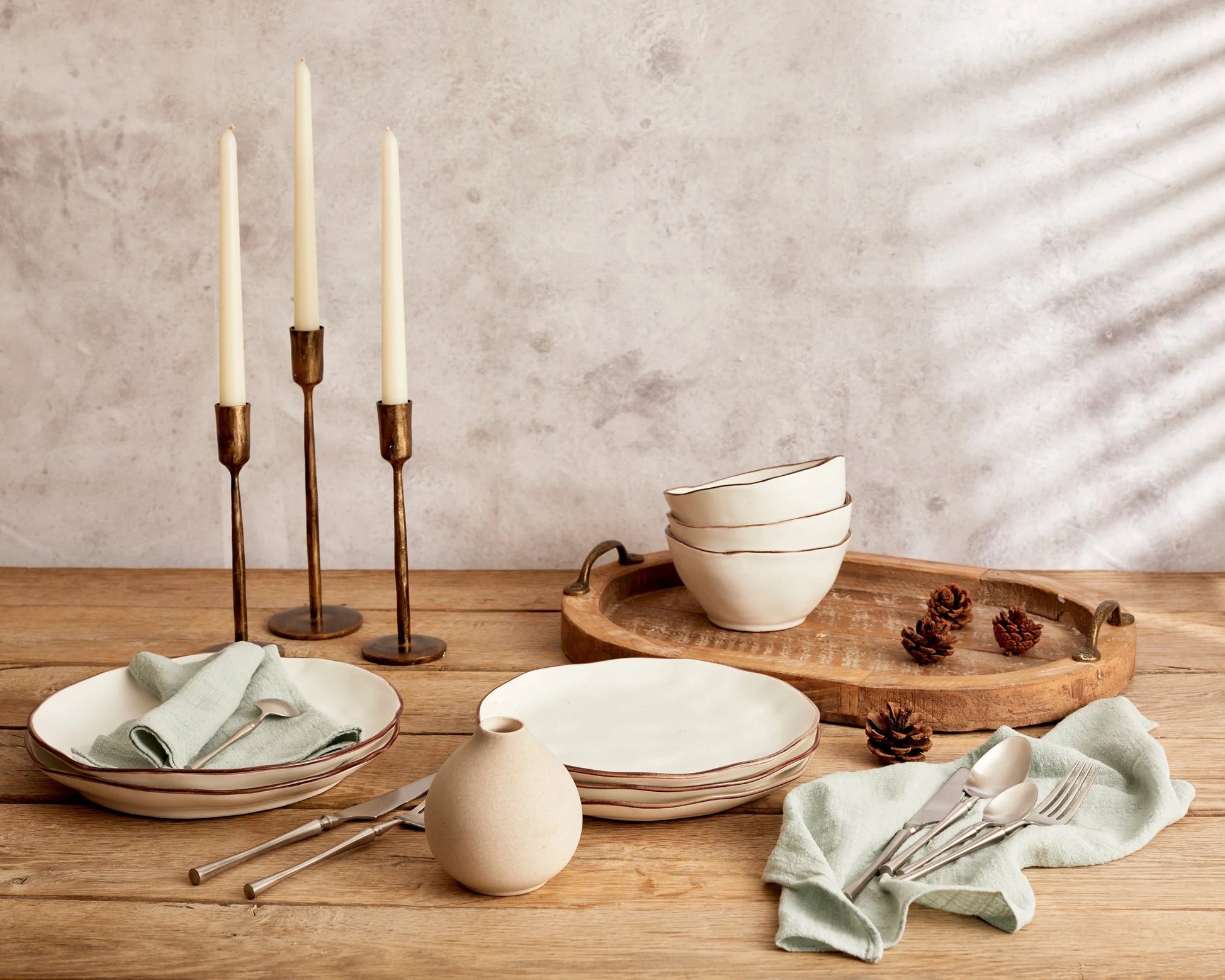 The Florence Porcelain Round Dinner Plate with uneven edges comes to life using traditional handmade techniques of molding and the finest quality of clay resulting in a hard, non-porous, scratch resistant, and very strong tableware.