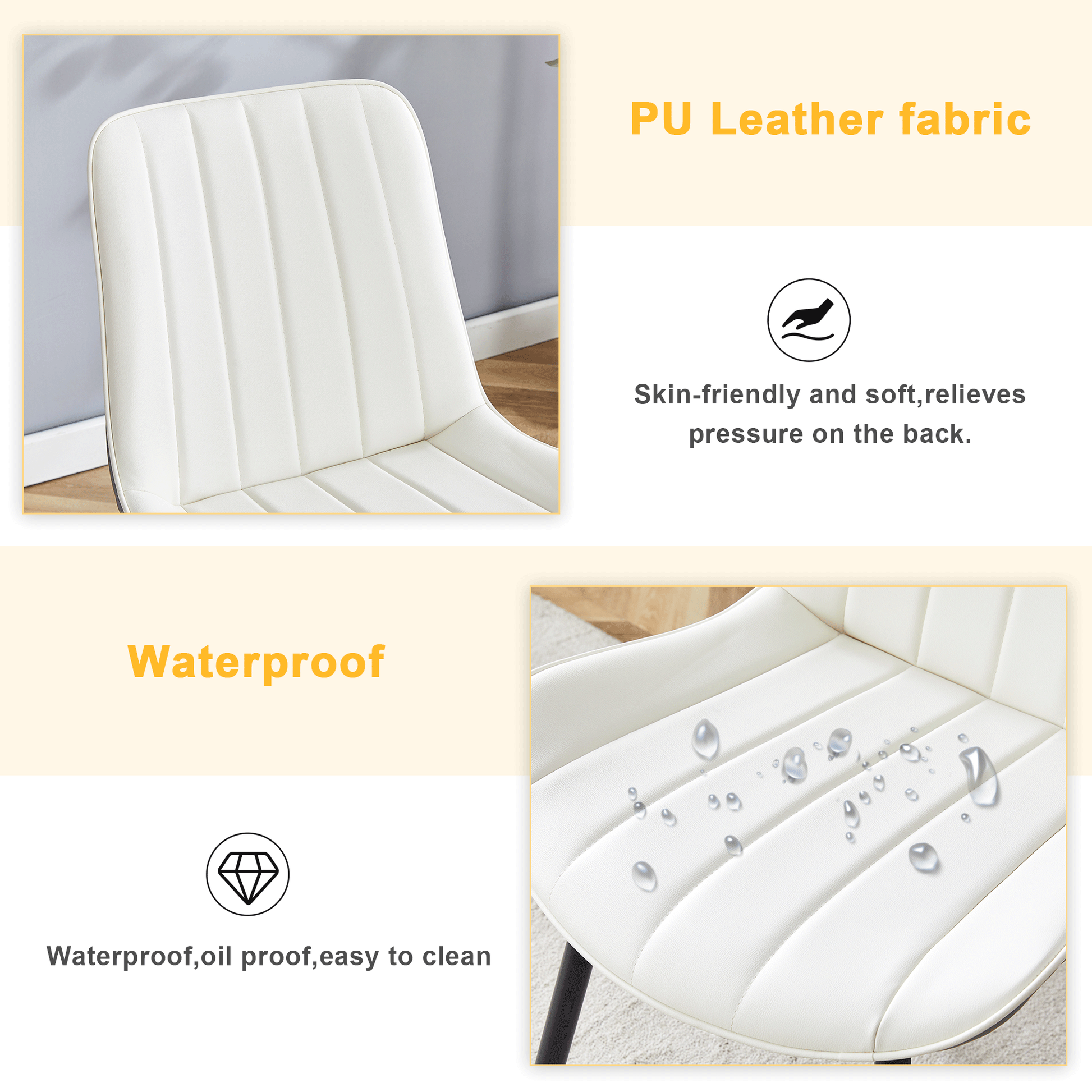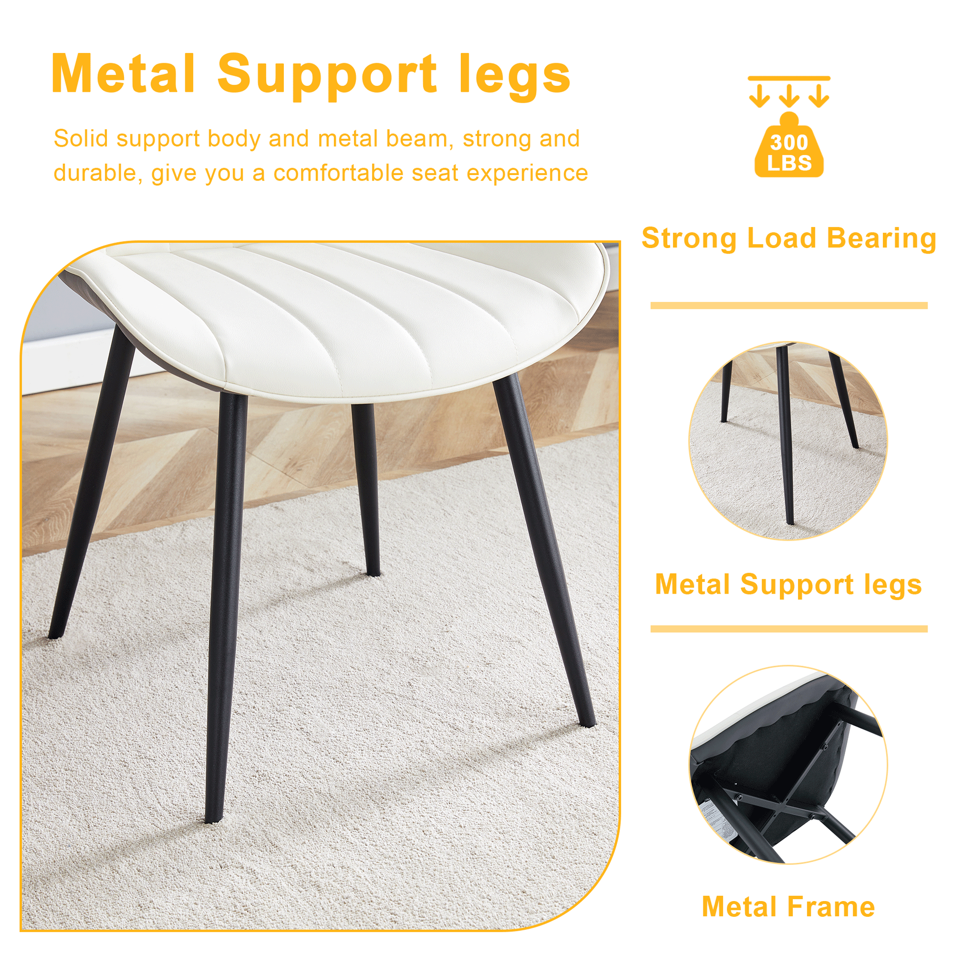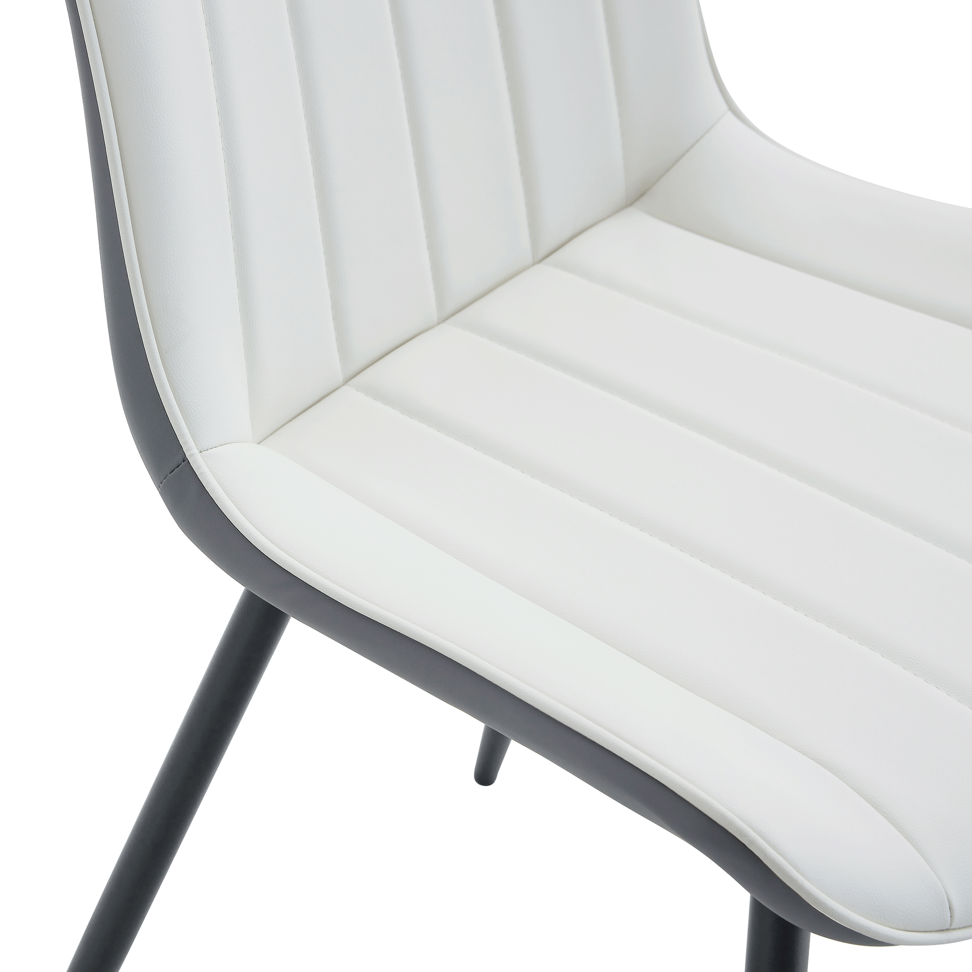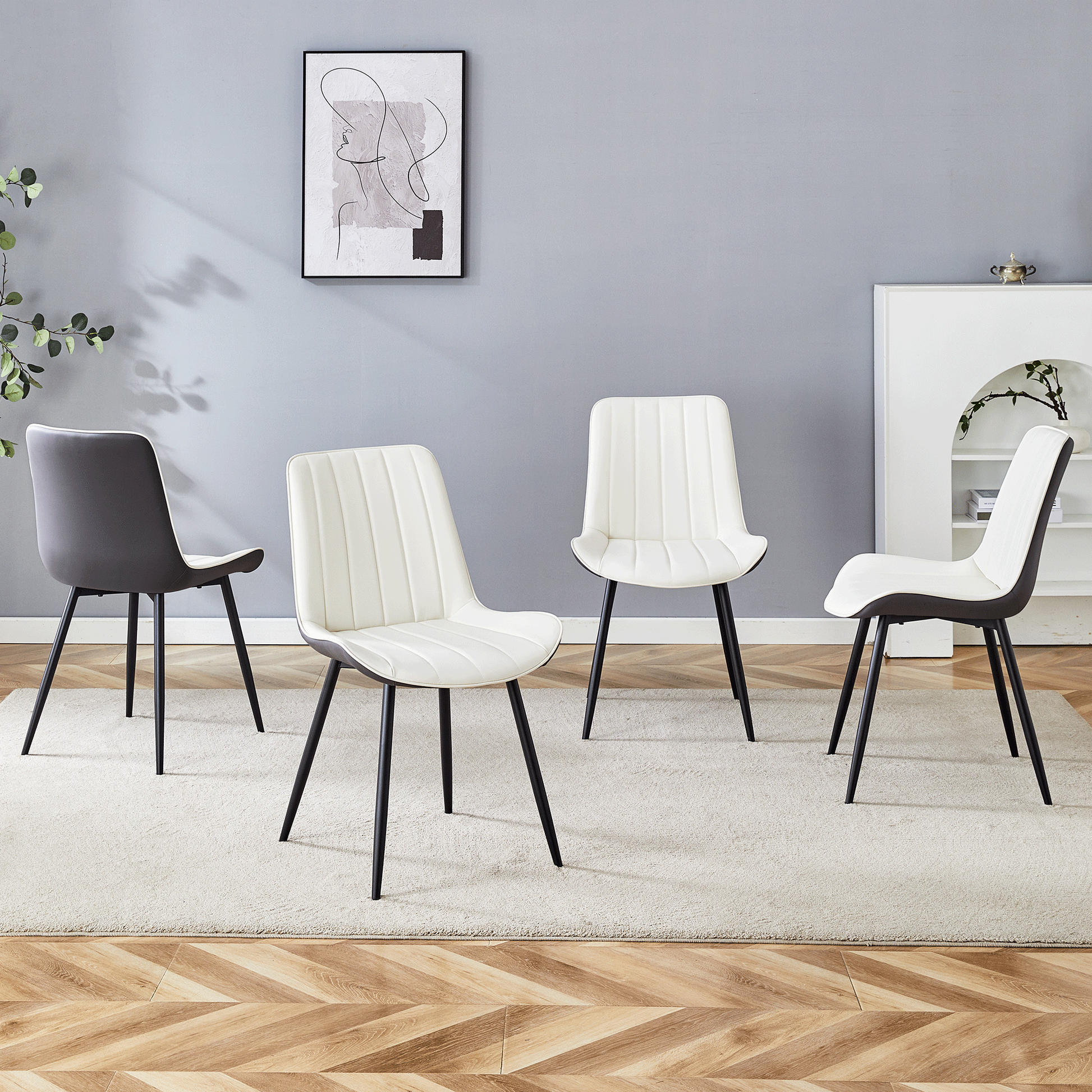Modern Minimalist Dining Chair Set-White/Dark Gray PU Leather, Metal Legs, 4 Pcs