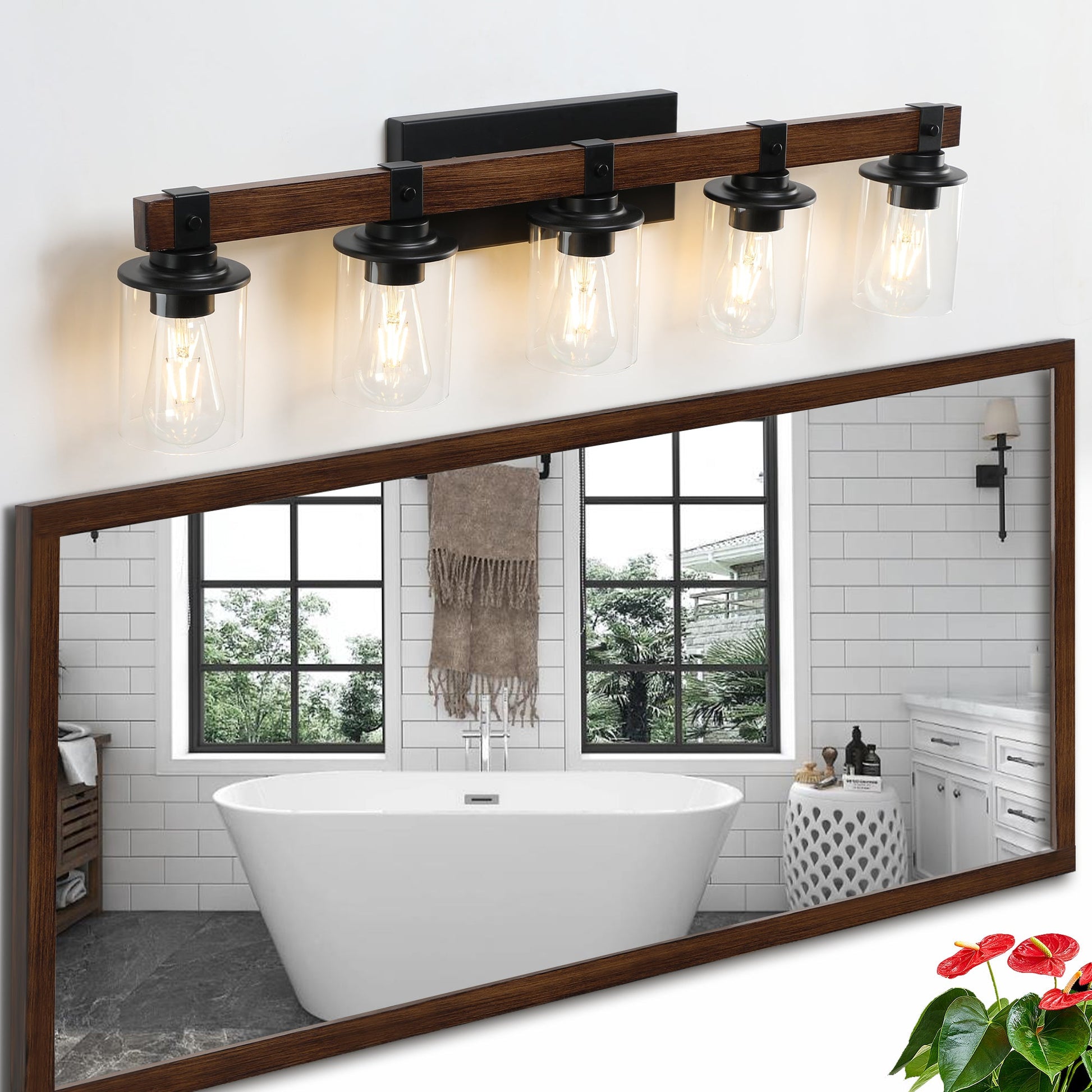 - Premium Material:Our bathroom light fixture is made of high quality metal and wood, compatible with incandescent, LED, CFL and other bulbs of E26 standard medium base .Maximum power 60W, (Bulbs NOT Included).