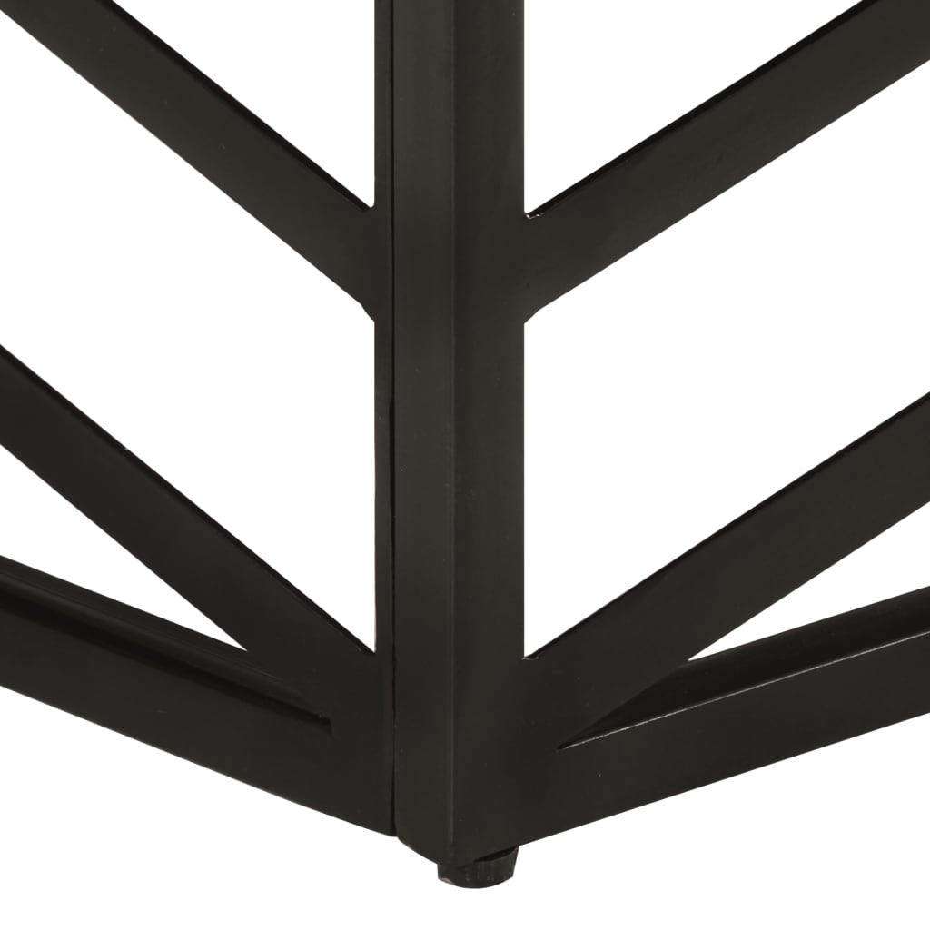 The coffee table is made of solid acacia wood, which has the strength to bear the weight. It also stands the wear and tear of time, making it stable and durable. Additionally, the table legs are constructed from robust cast steel which features its hardness and toughness that contribute to the table's stability as well as to its industrial design.