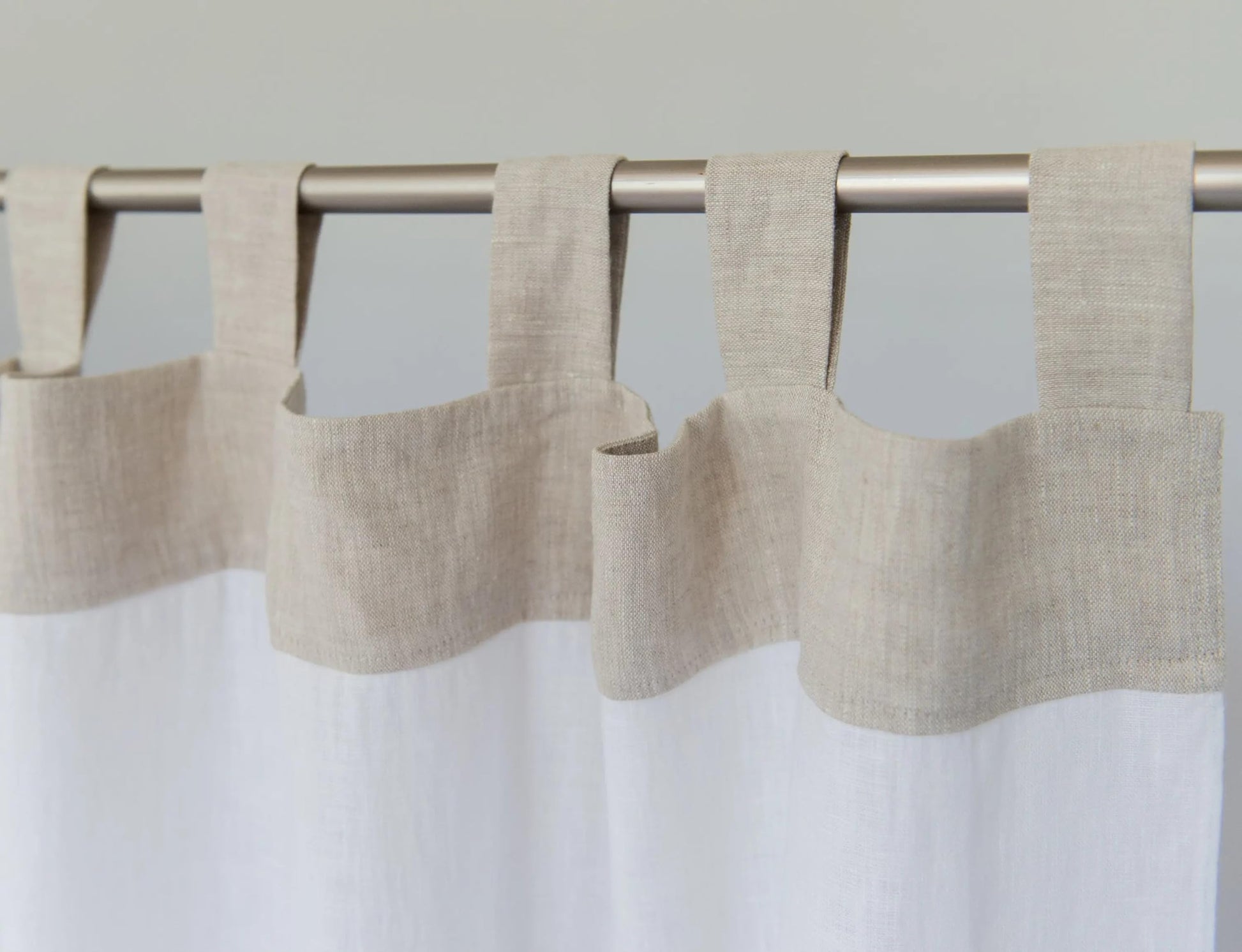 White and Natural Light Linen Curtains with tabs, Two Tones 241 cm/ 95 inches